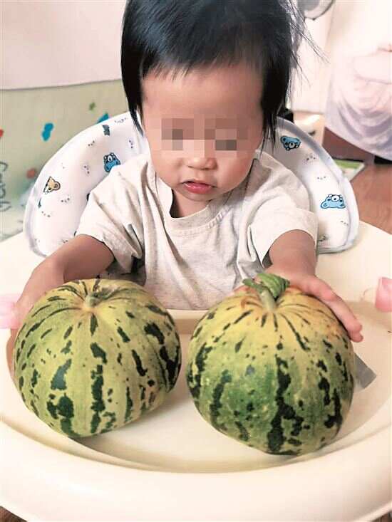 ▲病魔来袭前知恩可以在学步车上帮妈妈“运送”小西瓜。 |