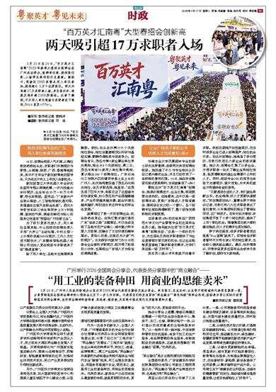 “百万英才汇南粤”大型春招会创新高 3月15日至16日,“百万英才汇南粤”2026年春季大型综合招聘会在广州成功举办,招聘单位数、提供岗位数、入场学生数均创历史最高。据统计,现场近2000