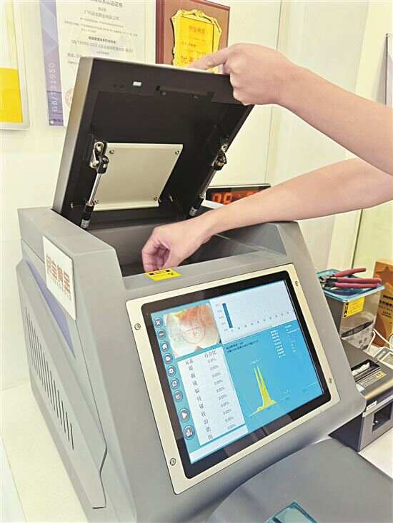 ▲正规黄金回收机构使用光谱仪检测黄金。受访者供图 |