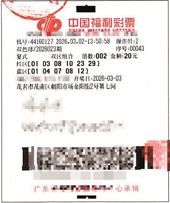 中国福利彩票双色球第2026023期开奖中,茂名市茂南区传出中奖喜讯,一彩民喜中双色球二等奖10注,中奖奖金达221万元,这是茂名市今年以来中出的第二个百万大奖。 近日,大奖得主陈先生(化姓)来到茂名市福利彩票发行中心办理兑奖手续。据陈先生介绍,他是一位老彩民,购彩已多年。第2026023期双色球游戏开奖前一天,他在茂名44160127福彩销售站点购买了20元双色球彩票。当期开奖后,陈先生核对中奖号码,惊喜地发现自己所买的彩票红区6个号码与开出的红球号码完全一致,共中得二等奖10注,中奖总奖金221万元。 陈先生表示,他一直保持着理性购彩的心态,将购彩视为一种娱乐方式,同时助力公益事业。“我平时会根据自己的喜好选号投注,中奖了很开心也很意外。”谈及中奖奖金的使用规划,陈先生说道:“会用这笔奖金提升家人的生活品质,同时继续支持福彩事业,为社会福利和公益事业发展贡献自己的一份力量。” 值得一提的是,目前广东已启动快乐8、双色球两大游戏联动3000万元赠票活动,凡在广东省内(不含深圳市)代销快乐8及双色球游戏的福彩销售网点,购买快乐8游戏“选五”“选六”“选十”玩法的复式彩票(单倍或多倍均可)且中奖的,兑奖时可获赠32元双色球游戏“6个红球+16个蓝球”复式机选彩票一张。 福彩中心提醒,作为国家发行的公益彩票,双色球秉持中国福利彩票“扶老、助残、救孤、济困”的发行宗旨,承载着购彩者的爱心,肩负公益使命,持续为社会公益事业的建设与发展贡献力量。购彩者投注金额的36%提取为彩票公益金,主要用于补充全国社会保障基金、支持教育助教助学、发展残疾人事业、困难群体大病救助、补助城乡医疗救助基金等社会公益事业;重点用于老年人、残疾人、孤儿、留守儿童、困难群众等社会福利事业。 ■新快报记者 陆妍思 通讯员 何兰妹