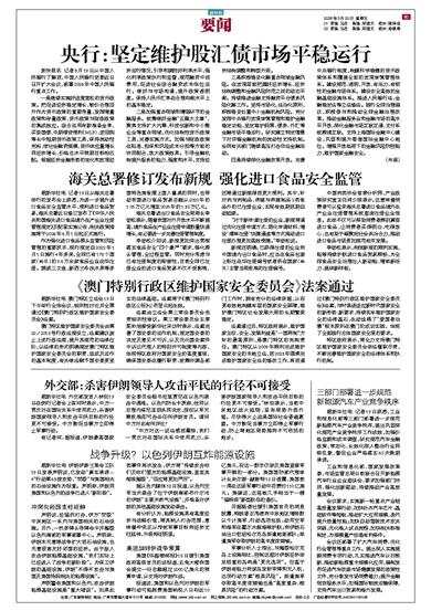 据新华社电 外交部发言人林剑19日在例行记者会上答问时表示,中方一贯反对在国际关系中使用武力,杀害伊朗国家领导人和攻击平民目标的行径更不可接受。中方敦促当事方立即停止军事行动。 有记者问: