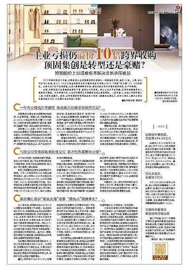 短期股价上涨或难根本解决增长承压难题 2025年刚实现扭亏为盈,定制家居企业顶固集创便迅速抛出一笔高溢价收购,溢价10倍。上周,该公司发布公告称,拟以2.68亿元现金收购西安思丹德信息技术