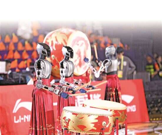 ■粤BA东区焦点战深圳对河源,赛前机器人表演暖场。