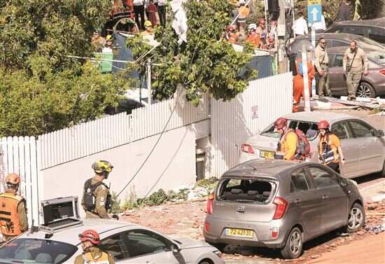 ■3月20日,在以色列中部城市雷霍沃特,应急反应人员在一处导弹袭击点开展工作。新华社发 |