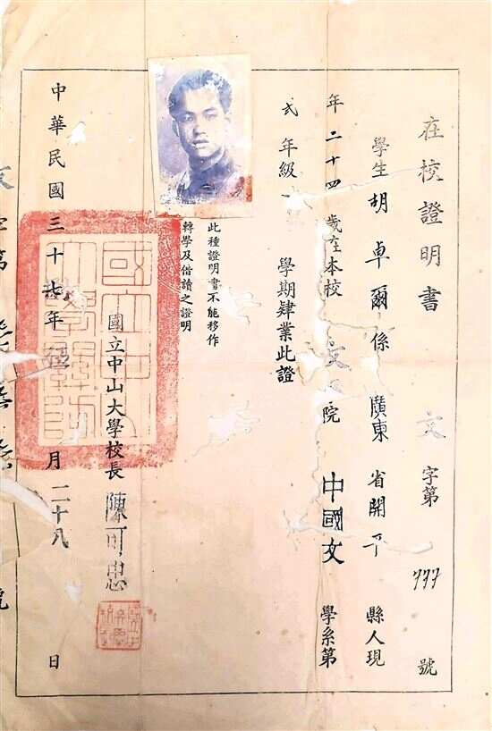 ■1948年中山大学在校证明。 |