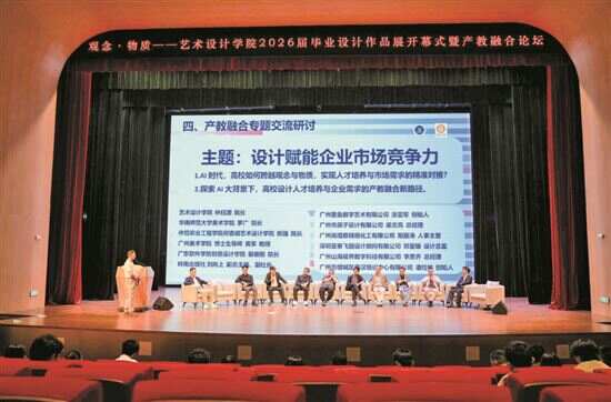 3月18日,以 “超越:观念・物质”为主题的广州商学院艺术设计学院2026年产教融合论坛在求真文化中心举办。论坛紧扣粤港澳大湾区文化创意产业发展脉搏,汇聚高校学界专家、知名企业代表,围绕AI时代艺术设计教育与产业发展深度融合展开深度交流,为校企协同培育高素质设计人才、推动设计产业创新发展凝聚共识、擘画路径。广州商学院副校长熊健文出席论坛并致辞,艺术设计学院副院长赖伟成主持相关环节。 论坛伊始,熊健文在致辞中明确了学校艺术设计学科产教融合的发展方向,强调校企双方要以此次论坛为契机,深化资源共享、优势互补,推动教育教学与产业需求同频共振,为粤港澳大湾区文化创意产业发展培育更多优秀设计人才,为区域经济社会发展注入设计创新活力。 广州商学院艺术设计学院院长林钰源随后以“设计,提升企业市场竞争力”为核心发表讲话,他指出,企业市场竞争的本质是产品竞争,而产品竞争的核心是设计竞争,优质设计是企业提升市场竞争力的关键。设计根植商业场景,其底层逻辑是经济,既要坚守功能核心,也需兼顾成本与利润,让设计真正服务于产业发展。同时他强调,美是一种独特的生产力,更是AI无法替代的核心能力,学院始终以培养学生的审美能力为核心,通过设计为产品赋予高附加值,这也是学院人才培养的核心方向。他还表示,在座企业是学院人才培养的“用户”,此次论坛也希望倾听企业的“用户体验”,让学院人才培养更贴合产业实际需求,推动校企融合走深走实。 在“设计赋能产业竞争力”专题交流研讨环节,华南师范大学、仲恺农业工程学院等高校专家与参会企业代表齐聚一堂,围绕AI时代高校人才培养与市场需求精准对接、产教融合新路径探索等核心议题展开热烈讨论。 此次产教融合论坛的成功举办,不仅搭建了高校与企业深度交流的优质平台,更明晰了AI时代艺术设计产教融合的发展方向。(梁志钦)