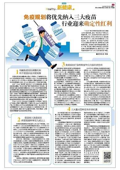 免疫规划将优先纳入三大疫苗 行业迎来确定性红利