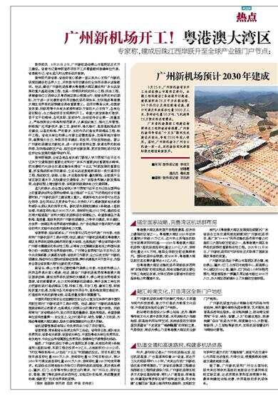 3月25日,广州新机场项目开工活动在佛山市高明区举行。本期工程将建设2条远距平行跑道、建筑面积约26万平方米航站楼、94个机位以及相应配套设施,预计可满足年旅客吞吐量3000万人次、货邮吞吐量50万吨、飞机起降26万架次的运营需求。 广东省机场集团工程建设指挥部总工程师凌语珍透露,广州新机场将争取在“十五五”期间完成建设并投运,争取2030年投入使用。届时,广州新机场与广州白云机场一西一北,双机场协同托举国际航空枢纽能级跃升。 ■采写:新快报记者 李佳文 胡珊霞 通讯员 粤机宣 ■摄影:新快报记者 毕志毅 锚定国家战略,完善湾区机场群布局 粤港澳大湾区是我国开放程度最高、经济活力最强的区域之一。粤港澳大湾区2025年经济总量预计突破15万亿元,这片热土所催生的航空市场需求同样旺盛——2025年粤港澳大湾区机场群7座机场旅客吞吐量达2.37亿人次、货邮吞吐量达972万吨,稳居全球航空枢纽集群前列。国际机场协会预测,到2035年,粤港澳大湾区航空客运需求量将达4.2亿人次。 但粤港澳大湾区运输机场布局面临东西两岸“东强西弱”的现实挑战,现有运输机场主要位于珠三角地区东部,对珠江西岸主要城市的航空服务能力和覆盖不足。 被列入《粤港澳大湾区发展规划纲要》《广东省综合立体交通网规划纲要》的广州新机场项目,是广东“3+4+8”民用运输机场布局中着力打造的三大国际航空枢纽之一,是粤港澳大湾区世界级机场群的重要标志性工程。2025年12月30日,广州新机场项目可研报告正式取得了国家发展改革委的批复。 广州新机场选址于佛山市高明区更合镇,地处佛山、肇庆、江门、云浮四市地理中心,距离佛山中心城区约50公里,肇庆、江门均在1小时车程范围内,将直接服务广佛肇及周边城市超过2000万人口,为大湾区西部填补上了关键的空港拼图。 融汇岭南文化,打造湾区全新门户地标 广州新机场航站楼巧妙融汇传统人文底蕴与现代科技质感,致力于打造成为彰显文化自信、升级旅客体验的全新门户地标。 航站楼的造型设计从佛山祖庙、龙舟、醒狮等传统文化元素中汲取灵感,采用流畅的六指廊构型,既高效利用站坪空间,其流线型的交错拱屋顶更蕴含“千龙竞发”“雄狮醒耀”的深刻立意,气势恢宏,将成为佛山乃至粤港澳大湾区的全新门户地标。 广州新机场室内设计将融合现代风格与传统韵味,将布置岭南特色园林景观、艺术展陈,配套高品质商业服务。在功能构建上,航站楼全面贯彻“平安、绿色、智慧、人文”的建设理念,探索构建“自治”机场为方向,深度融合5G、大数据、物联网、人工智能等新技术,实现机场智慧运行与精细化管理。 轨道交通和高速路网,构建多机场体系 昨天,新快报记者从广州市机场路出发,经过机场高速、广台高速再沿着297省道,到达开工仪式现场用时1.5小时。“未来出行到广州新机场还是非常便捷的。”广东省机场集团工程建设指挥部总工程师凌语珍介绍,广州新机场将实现多方式联运高效衔接:将引入广湛高铁、深南高铁、珠肇高铁等多条区域干线轨道交通,同步构建“五横四纵”高速公路网和快速路网,实现航空与多种交通方式的“无缝衔接”,旅客可在交通中心内同层完成值机、行李交运,便捷换乘其他轨道交通或地面交通。 据了解,广州新机场和广州白云国际机场未来还将依托高效的地面综合交通网络实现互联互通,达成资源共享和客流便捷中转,最终构建起功能完善、协同高效的多机场体系。