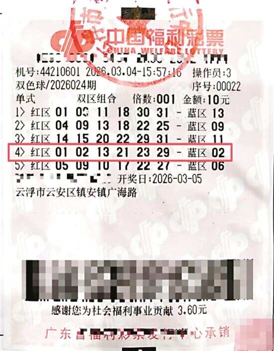 新快报讯 记者陆妍思 通讯员凌超杰报道 中国福利彩票双色球游戏第2026024期开奖中,全国共中出双色球二等奖79注,其中1注二等奖花落云浮市云安区44210601福彩销售站点,中奖彩票是1张投注金额为10元的5注单式彩票,中奖奖金84.31万元。 近日,幸运中奖者林先生(化姓)来到云浮市福利彩票发行中心办理兑奖手续。据林先生介绍,他偶尔购买福彩双色球,抱着“中奖开心,不中奖也是做公益”的平常心娱乐一下,在亲历大奖后,更加相信福利彩票是公平公正公开的,以后会继续理性购彩,支持福利彩票公益事业。