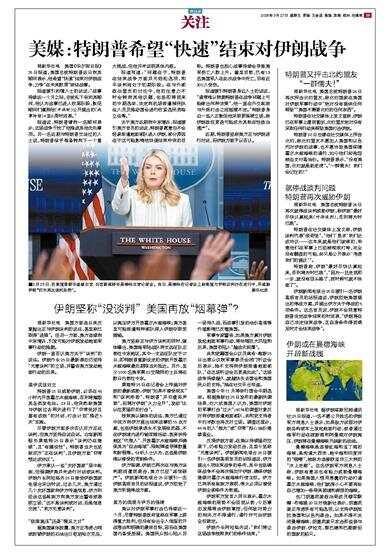 美媒:特朗普希望“快速”结束对伊朗战争
