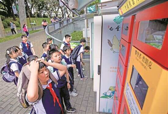 ■广州白云山风景名胜区上线了外骨骼机器人,吸引前来研学小学生在机器前驻足观看。 |