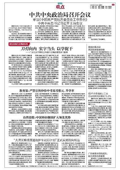 中共中央政治局召开会议 审议《中国共产党地方委员会工作条例》 中共中央总书记习近平主持会议