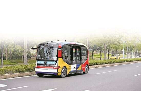 ■3月24日,在广州市海珠区螺旋大道拍摄的文远知行和广州巴士集团携手打造的生物岛2号线自动驾驶巴士。新华社发 |