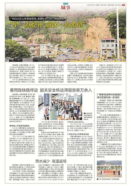 “广州白云区发生山体滑坡”采访纪实 2025年8月6日清晨,广州白云区大源村黄庄片区发生了山体滑坡,几栋楼直接被冲垮,多人因掩埋被窒息而亡。得知事件发生后,新快报记者在第一时间赶往现场,并多次拍摄视频报道救灾情况。 8月6日到8月8日,我连续三天在大源村的沙太货运市场跟踪报道消防搜救的情况,直到最后一名失踪者的遗体被搜救出。每当有人被营救出来,我都很开心;每当得知有人去世,我又无比难过。 8月8日12时许,当最后一个失踪者被搜寻到且确认死亡之后,整个沙太货运市场的所有救援车辆——消防车、救护车、挖掘机、叉车、铲车、公务车齐声鸣笛致哀。在那个炙热的中午,站在太阳底下的我在听到鸣笛声后突然觉得很冷。 整个报道周期,新快报共计推出8条视频,实时记录了此次救援的进展详情,各平台总播放量数百万次。此外,新快报还通过文字和照片方面多维度全方位报道救援情况,这是新快报在2025年度非常完整的一次突发新闻报道。 对我个人来说,在这个系列的采访中,我学会了一个房屋倒塌术语——逐层垂直压溃,并仔细搜索了一下这个词的含义。这个术语,可能我这辈子再也不会用到,但当我看到消防和医护人员在废墟中把罹难者一个又一个抬出来时,我明白营救者是用一种怎样的心情在完成一项“不可能任务”。 在天灾面前,人类可能很渺小,但人性可以很伟大。作为前线记者,真的要向所有消防、医护、后勤人员致敬。 新快报记者 王敌
