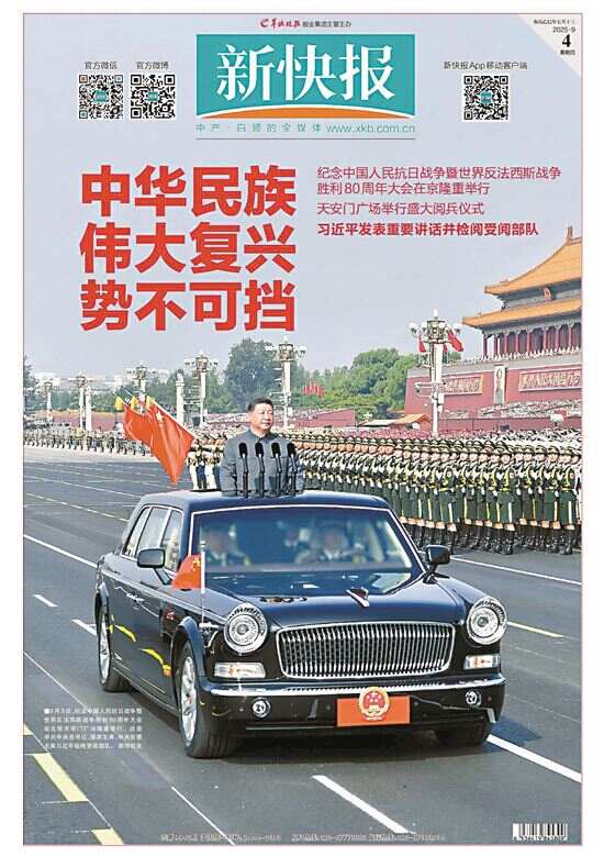 《胜利日大阅兵》特别报道编辑心得 2025年九三阅兵,全球瞩目。“东风-5C”液体洲际战略核导弹登场时,央视“打击范围覆盖全球”的解说词令国人热血沸腾,更令全球为之震动。 新快报当天16个版全部拿来做了大阅兵,专刊栏头字确定为“胜利日大阅兵”,这几个字,读之精神抖擞,版面的风格基调由此展开。 新快报对九三阅兵的报道版面思路大致可概括为:内容精选、简约大气、视觉冲击。 阅兵特刊的头版和底版均以海报设计,形成呼应,构成升华。阅兵报道的头版,以习近平总书记检阅受阅部队的单幅大图拉大做海报效果,配以凝练有力的主标题:《中华民族伟大复兴势不可挡》。底版以纪念大会结束放飞和平鸽的图片做海报,底版大标题是《人类和平与发展的崇高事业必将胜利》。头版的阅兵开始,和底版阅兵结束,一头一尾设计形成呼应。头版和底版的两个大标题,则体现了从国家叙事到全球叙事的升华。 编辑部对于阅兵版面的思路很清晰,即要求视觉效果做突出。展示装备的版面字数力求精简,每个版只综合提炼一条几百字的稿子,紧紧抓住最核心最抢眼的信息,选择一张最有冲击力的主图做视觉中心,做突出效果。 如报道战略打击群的版面,作为最具威慑力的国之重器,版面用08/09版跨版突出呈现,“东风-61”陆基洲际导弹和“东风-5C”液体洲际战略核导弹两张图都突出处理,尤其是“东风-5C”的图片,采取跨版拉通,展示大国重器的气场。 九三阅兵不仅具有丰富的政治内涵、历史意义,还具有极高的情感价值。一份阅兵的报纸特刊,是一份集体记忆的建构。精心制作的阅兵特刊,往往被读者保存。 16个版的阅兵报道出街后,不少读者以及记者、编辑的朋友,都欲求得一份报纸收藏,这也反映出人们对重大新闻事件的报纸特刊版面的追捧。 新快报要闻部主任 陈志龙