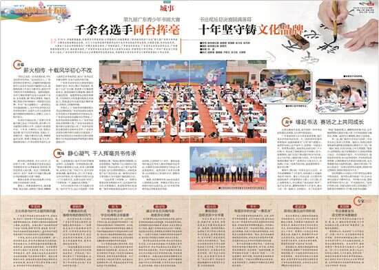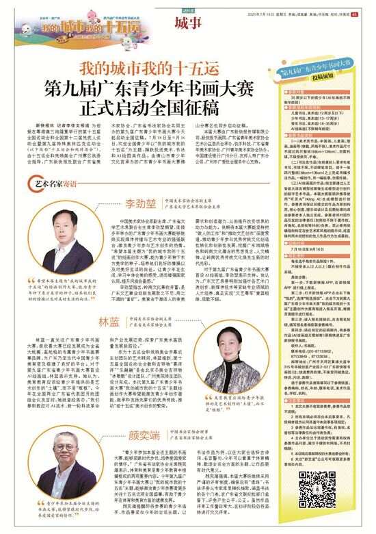 “翰墨青春 传承岭南”广东青少年书画大赛的艺术征途 新快报创刊28周年来临之际,由新快报发起并联合广东省美术家协会、广东省书法家协会共同主办了十年的“翰墨青春 传承岭南”广东青少年书画大赛也传来喜讯:今年2月,大赛被广东省教育厅列入2025-2028年全省性中小学生竞赛活动名单,并成为30项活动中唯一的书画比赛项目。而在2025年,大赛被第十五届全国运动会广州赛区执委会列为十五运会主题赛,吸引了全国六万多人参赛,为大赛举办十年来参赛人数最多的一届。 这一系列的荣誉背后,不仅承载着新快报十年坚守公益的初心,也彰显了新快报弘扬传统文化,打造广东艺术品牌的责任与使命。 2015年,第一届广东青少年书画大赛正式启动;2016年,为杜绝书法作品参赛时存在代笔的乱象,在时任广东省书法家协会主席、大赛艺术顾问张桂光教授的建议下,书法组增设了现场比赛的终评机制,一千多名入围者统一安排现场创作,书写的内容也由组委会拟定题库,严格的赛事机制得到了艺术界以及社会各界的广泛好评。2016年12月,首届千人书法现场赛在广州市流花路中苏友好大厦举办,甫一亮相,就以规格高、规模大、规矩严受到全国书法界、评论界的高度关注,成为岭南青少年艺术赛事中的品牌标杆。此后,众多省外书画爱好者开始关注这个立足广东的艺术赛事,来自全国各省市的参赛者一届比一届多。 2018年,坚持纯公益办赛的广东青少年书画大赛被广东省委宣传部列入重点文化扶持名录,并获得省委宣传部专项资金支持;2021年,广东省教育厅首次参与主办,此后几年,省教育厅都作为大赛指导单位参与赛事,使大赛更具权威性,参赛人数增长迅速,参赛区域也持续扩大,甚至在全国都具有一定的影响力。 广东省文联主席李劲堃与中国美术家协会副主席、广东省美术家协会主席林蓝都曾担任广东青少年书画大赛艺术顾问。李劲堃曾说:“一个影响全省乃至全国的青少年美术盛事,连续多年举办,征集到了数以万计的参赛作品,这是媒体传播与艺术专业成功联姻的结果,充分发挥出了媒体的社会职能,让文化有效传承得以最大化。”林蓝也曾在采访中表示:“在大数据时代,用传统和新媒体结合的方式,无缝对接,宣传落地,彰显了媒体在大众传播中的社会责任和担当,以大爱之心,传美育大善。” 时至今日,“翰墨青春 传承岭南”广东青少年书画大赛依旧每年都会如期而至。截至第九届,书画大赛共收到来自全国各省市自治区及港澳地区的投稿作品超过30万幅。2026年,作为省教育厅白名单的第十届赛事,将在今年上半年启动,大赛将继续坚守公益初心,为青少年的艺术成长搭建一个更广阔、更有效的平台。 新快报书画院院长 洪波