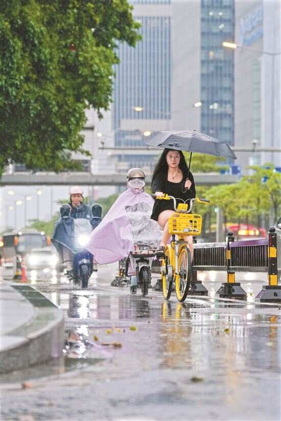 ■3月30日早上9时许,广州市天河区迎来“上班雨”,给不少市民上班造成影响。 新快报记者 郭思杰/摄 |
