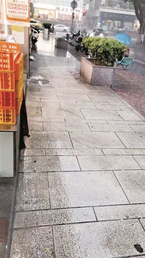 积水一度没过车轮,为多年来最严重的一次 3月29日14时许,广州市区内降下暴雨,多个区发出暴雨、雷雨大风等预警信号。社交媒体上众多网友发布图片、视频,显示越秀区华乐街淘金路与华乐路附近出现“水浸街”现象,积水甚至一度没过车轮。新快报记者走访了解情况,现场商户表示,过去几年该路段遇特大暴雨时虽常出现水浸情况,但此次是多年来“水浸街”最严重的一次。 ■采写:新快报记者 金瑜 梁潇静 ■图片:新快报记者 金瑜 梁潇静 部分为受访者供图 下水道“反水”,浸水水位为多年来最高 3月30日下午,新快报记者来到越秀区华乐街淘金路与华乐路附近,沿街多家店铺的商户表示,此次水浸情况严重程度远超往年,排水不畅、积水倒灌等因素叠加,导致3月29日下午该排商铺因地势低基本全部被淹。 华乐大厦沿街一家鞋店店员杨女士告诉记者,她在这工作了7年,这是水浸情况最严重的一次。杨女士表示,往年雨季也有因长期下雨、雨势过大等出现“水浸街”,但此前积水仅漫到门口木板位置,而这次店内水位最高时大约30厘米高,“首层鞋柜全被淹,水的浮力大得我平时搬不动的试鞋凳都浮起来了”。 从杨女士当时拍摄的图片可以看到,3月29日15时10分左右,淘金路路面已经出现水淹现象,店铺附近的下水道及井盖处有水不断冒出。仅十分钟后,积水水位就到达店铺门口。约15时40分,店内水位已漫过小腿。“可能是排水口塞住了,涨水速度非常快,雨停了水位才慢慢降低。”杨女士说。 附近停车场的管理员介绍,当日下午,水位最高时漫过道路中央红白柱最上方的白色部分。记者走到该红白柱旁发现,管理员所指的位置已接近腰部。该管理员表示,去年改造排水渠后排水速度有所提升,一般雨停半小时后积水可完全消退,但当时瞬时雨量较大加上附近水槽反水等,依旧水浸。杨女士同样表示,该路段反复维修,水浸问题却始终没得到解决,“我们这一排店铺电路都只能埋地线,很担心水漫上来会漏电,希望水浸问题能早日解决。” 雨势超五年一遇,街道提前部署应急抢险 针对华乐路此次水浸情况,越秀区建水局回应称,该区域地势低洼,3月29日下午出现短时强降雨,瞬时雨势较大,45分钟平均雨量达75mm,超五年一遇;受下游东濠涌高水位(水位达8.0m)及孖鱼岗渠箱水位(末端水位8.5m)满管顶托影响,现状排水管网过流不及,导致排水缓慢。 华乐街党建办工作人员表示,雨势出现后,街道随即组织淘金北隧道9名环卫工人携带抢险装备到场,同步向区建水局、区应急局、交警及市排水公司汇报协调,增派专业处置力量。值班领导与三防应急抢险队伍立即到场,在隧道入口拦截过往车辆并引导绕行,对隧道周边进行围蔽,提醒群众勿进入;通知地下车库物管单位堆砌沙袋、设置防涝挡板,降低水浸影响;向邮电社区、青菜东社区、青菜岗社区及周边沿街商铺发送通知,做好用电设施断电及电动车换电设施断电处置,防范次生危险;环卫工人对重点路段雨水篦子、沙井口杂物及溢出的黑泥、油化物进行了清理。