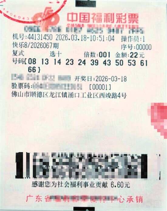 佛山快乐8“选十中十”得主: 新快报讯 记者陆妍思 通讯员袁苏华报道 3月18日,中国福利彩票快乐8游戏第2026067期开奖,当期全国中出“选十中十”3注,其中1注花落佛山市顺德区44131450福彩销售站点。中奖彩票是一张“选十”复式彩票,中得1注“选十中十”和10注“选十中九”,总奖金508万元。 3月19日,大奖得主王先生(化姓)来到佛山市福利彩票发行中心办理兑奖手续。谈及中奖感受,王先生仍难掩激动:“原来中大奖这么紧张,我一直紧紧揣着彩票,生怕弄丢了!我平时比较喜欢复式投注,不过一定要理性投注,才能真正收获购彩的乐趣。” 大奖为王先生带来了开心和激动,也让中奖站点热闹起来。此次中出大奖的44131450福彩销售站点是2023年通过公开征召开设的,站点负责人邓女士坚持诚信经营,热心公益事业,赢得周边市民的认可与信赖。“这是站点首次中出大奖,很幸运!希望这份好运能传递给更多购彩者。”邓女士开心地说道。