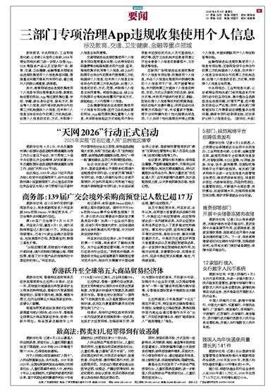 涉及教育、交通、卫生健康、金融等重点领域 新快报讯 中央网信办、工业和信息化部、公安部2日发布公告称,2026年将会同相关部门进一步深入治理App、SDK等服务产品以及互联网广告、教育、交