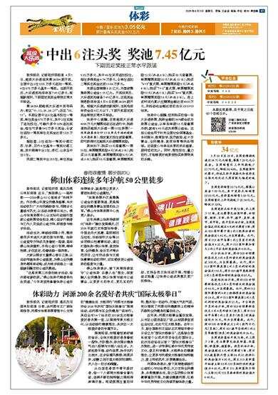 中出6注头奖 奖池7.45亿元