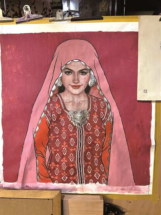■蒋采苹笔下的“哈萨克少女肖像”。 |