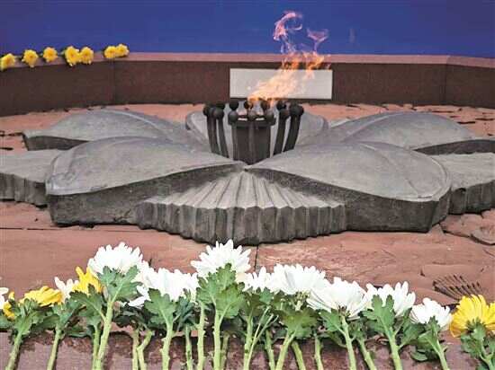 ■参加纪念活动的各界代表在木棉花火炬前敬献鲜花。 新快报记者 麦婉诗/图 |