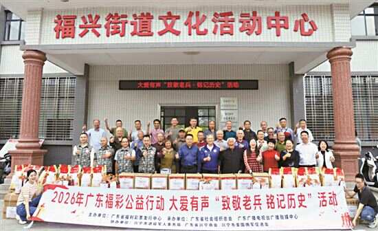 爱心物资慰问兴宁百位老兵 新快报讯 记者陆妍思 通讯员粤福彩报道 近日,2026年广东福彩“致敬老兵 铭记历史”活动在梅州市兴宁市福兴社区党群服务中心举行。 本次活动由广东省福利彩票发行中心主办,广东省社会组织总会、广东广播电视台广播融媒中心承办,兴宁市退役军人事务局、广东省兴宁商会、兴宁市爱国拥军促进会协办,以实际行动致敬英雄,传递公益温度。 兴宁市退役军人事务局相关领导到场致辞,表示此次活动既是对老兵奉献精神的深切致敬,也是凝聚社会各界力量、深化拥军优属工作、传承红色精神的生动实践。广东省社会组织总会副秘书长详细介绍了广东福彩公益行动在整合公益资源、关爱退役军人、传递社会温暖等方面所做的积极探索和显著成效,并表示未来将持续发挥桥梁纽带作用,积极倡导更多的社会力量参与到关爱老兵、传承红色记忆的公益行动中来。 活动现场,广东福彩向兴宁市退役军人事务局捐赠一批爱心物资,以实际行动彰显广东福彩的公益初心与社会责任担当。据悉,这批物资将用来慰问兴宁市百位困难老兵,把党和政府的关怀送到老兵身边,让老兵们感受到来自社会对他们的敬重和关爱。 捐赠仪式后,“福彩茶话会·共忆初心”环节在融洽的氛围中展开。多位老兵动情分享了往昔军旅生涯的历历往事,活动特别邀请中国足球名宿到场,与老兵们互动交流,重温光荣岁月,也闲话家常,现场气氛温馨而热烈。 同时,工作人员走访了两户老兵家庭,详细了解他们的生活情况,为困难老兵排忧解难,送上诚挚的问候和慰问物资。 此次致敬老兵公益活动是广东福彩积极践行社会责任、传递公益温暖的切实举措,是全社会共同致敬英雄、铭记历史的具体实践。下一步,广东福彩将继续携手社会各界,坚守公益初心,践行福利彩票“扶老、助残、救孤、济困”发行宗旨,共同为广东社会福利和公益事业贡献力量。