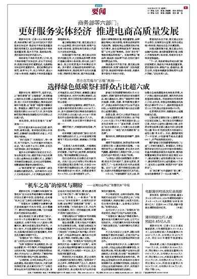 据新华社电 记者6日从商务部获悉,商务部等六部门近日印发《关于更好服务实体经济 推进电子商务高质量发展的指导意见》,旨在持续推进电子商务高质量发展、高水平开放、高效能治理,更好服务实体经济巩固壮
