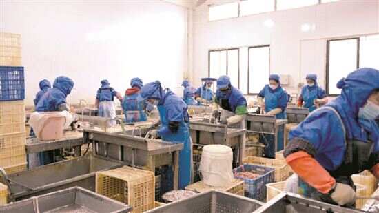 ■厂房内,工人们正有序进行原料处理、加工、包装等工序。 |