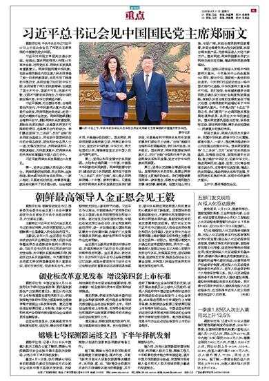 据新华社电 中共中央总书记习近平10日上午在北京会见了郑丽文主席率领的中国国民党访问团。 习近平对郑丽文率团来访表示欢迎。他指出,国共两党领导人时隔10年再次会面,对两党关系、两岸关系发展