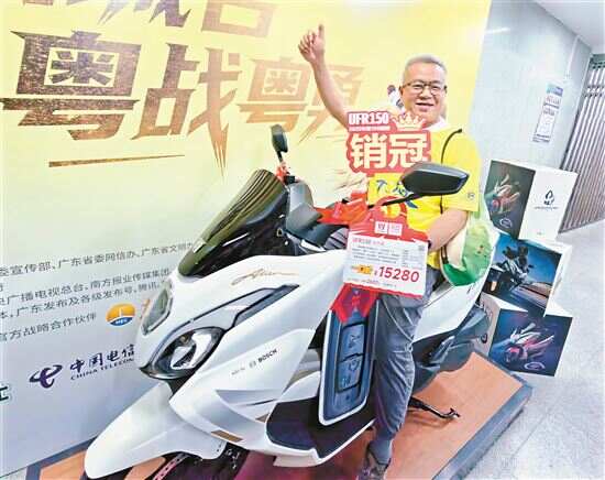 ■肇庆球迷获得江门送出的首台摩托车。 新快报记者 黄闻禹 通讯员 郭永乐/摄 |