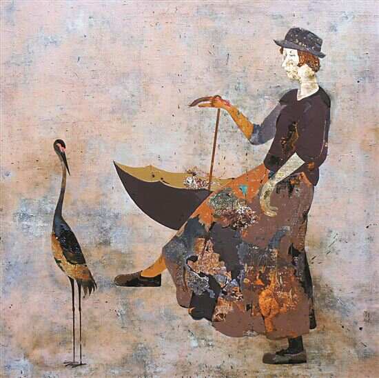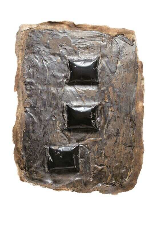 ■余潮松 温暖前行之三 漆,瓦灰,金属箔 2014年 |