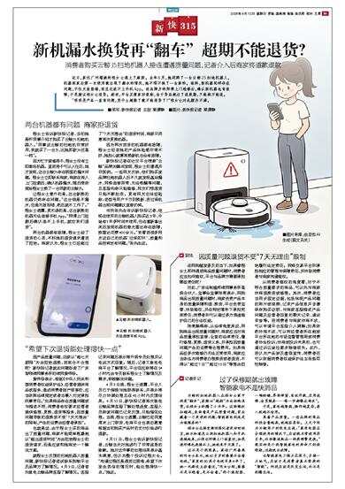 新机漏水换货再“翻车” 超期不能退货?