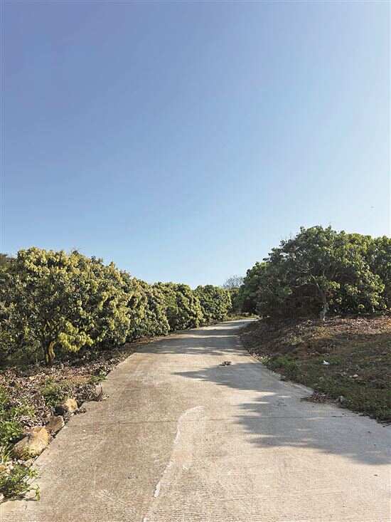 ■在仙村镇某果园内,两排荔枝树上枝叶茂密,却很少有开花结果。 |