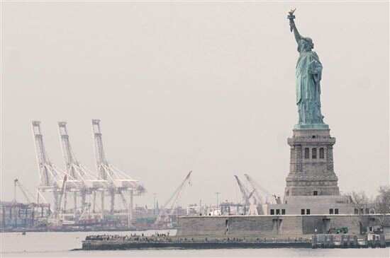 ■4月15日在美国纽约拍摄的纽约和新泽西港。纽约和新泽西港是美国东北部最大的贸易和货物进出口中心。新华社发 |