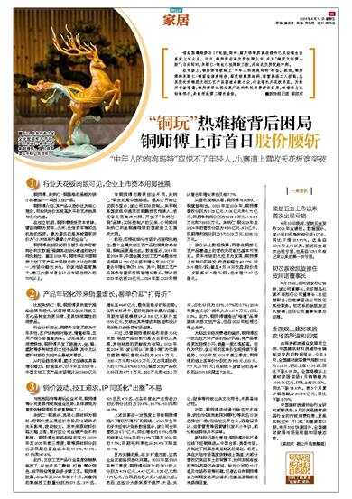“中年人的泡泡玛特”取悦不了年轻人,小赛道上营收天花板难突破 借助国潮趋势与IP包装,财神、葫芦等铜质家居摆件已成功催生出多家上市企业。近日,铜师傅在港交所挂牌上市,成为“铜质文创第一股”