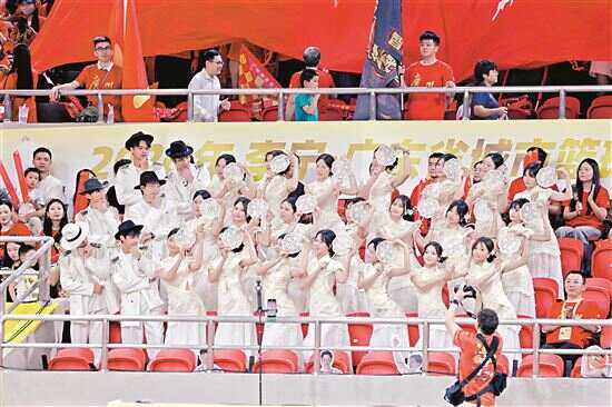 ●粤BA·第四轮 广州队 96∶48 肇庆队 4月18日,粤BA第四轮正式开打。在天河体育馆,广州队以96∶48大胜肇庆队。尽管比分一边倒,但对现场球迷来说,比赛一点也不乏味。从赛前开始,各种表演便应接不暇,在本土歌手梁山山的带领下,现场球迷仿佛在看球的同时还参与了一场演唱会。 五场演唱会同开 粤BA让天体变成第六场 昨晚可以说是广州的“演唱会之夜”,广州有五场演唱会扎堆开唱。周深在奥体中心开唱,李健在宝能演艺中心开唱,张震岳在广州体育馆开唱,李佳薇在亚运城开唱,汪苏泷、卫兰、周兴哲等人的“声生不息演唱会”在大学城体育中心开唱。广州的各大体育场馆同时引吭高歌。 没有明星演唱会,但因为有粤BA的比赛,天河体育馆的气氛毫不逊色。在比赛开始前半小时,整个体育馆就沉浸在欢快的氛围里。无论是现场DJ播放的暖场歌曲,还是啦啦队的舞蹈配乐,都立即让现场观众融入其中。 广州本土歌手梁山山昨晚一共唱了四首歌。开场前,他演唱了粤BA的主题歌《势不可挡》,歌声一响起,就立即引起了现场球迷的欢呼。在中场休息时,梁山山又唱了三首粤语歌。在场内,他演唱了十五运会的主题歌《气势如虹》,或许是这首歌唤醒了观众的全运记忆,现场气氛马上就被调动起来。随后,梁山山还走上看台,唱了《不再犹豫》和《光辉岁月》,很明显这两首歌观众都是耳熟能详,所以几乎就是全场大合唱。 在比赛暂停期间,无论有没有啦啦队表演,现场也都播放欢快的音乐。每当音乐响起,观众们无不跟着音乐唱歌舞动,这场比赛几乎让天体变成了广州昨晚的第六场演唱会。 奥运冠军助阵 谢思埸:吃宵夜最重要 本场比赛,广东籍跳水奥运冠军谢思埸和亚洲女子400米栏冠军莫家蝶也来到了现场观赛。谢思埸表示,比赛肯定好看,但比比赛更重要的是大家要在赛后一起吃宵夜,“希望大家在各地玩得开心、吃得开心、看得开心!” 谢思埸坦言,这是他第一次现场看篮球比赛,而且感觉的确和在电视前看完全不同。“看电视就是听解说为主,到了现场才能发现所有人都很有激情,气氛完全不一样。” 退役之后,谢思埸目前是广东省二沙体育训练中心的一名教练。虽然粤BA是非职业比赛,但看到业余球员也这么投入,谢思埸不禁感叹,很多人没有机会从事专业体育,粤BA是一个非常好的展示平台,“很多人就是出于爱好去打球,但只要表现出色,说不定就被圈内人看到了,人生第二次机会就来了。” 聊回比赛,谢思埸表示,“友谊第一、宵夜第二、比赛第三”的主旨不变。“希望大家支持粤BA的同时,能在每个城市好好玩,吃得开心、看得开心——当然,能带对方去吃宵夜,就代表你赢了!” 莫家蝶是肇庆姑娘,来到广州主场看比赛,她直言现场的气氛十分热烈,并为家乡球队肇庆队加油助威。面对镜头,她热情推介家乡特色,向大家推荐肇庆裹蒸粽、怀集铁粉等美食,同时盛情邀请各地观众前往七星岩、鼎湖山游玩感受山水风光;谈及在广州的游玩选择,她推荐了长隆野生动物世界。 【现场】 广州队主场狂胜 拿下三连胜 粤BA揭幕战后,广州队接连战胜强敌云浮队与珠海队,此战回归主场气势如虹、状态正佳。而肇庆队已经遭遇了三连败,急需通过一场胜利,止住颓势,保留冲击季后赛的希望。广州队本场战术明确且坚决,全场一直冲击肇庆队的内线。 本场比赛,广州队的冯浩然表现出色,砍下全场最高的16分。回顾4月18日晚上的比赛,他说取胜之匙是防守,球队立足于做好防守,通过防守带动进攻,最终赢下比赛。面对后续的比赛,冯浩然表示将做好训练,打好每一场比赛。作为广州南沙人,他向从南沙赶过来支持他的现场球迷表达了感谢,“多谢南沙,多谢南沙的球迷,我会继续加油。” 主场狂胜肇庆队一倍分数,广州队借此拿下了三连胜,算是一扫开门黑的阴霾。肇庆队在经历开季以来的最惨痛失利后,已经遭遇四连败,想改变现状,未来还得加倍努力。 中山队客场逆转佛山 老莫现场打Call 4月18日晚,佛山南海体育中心体育馆。当终场哨声响起,比分定格在 97:89。中山队,又赢了!而且是带着“冠军牛”的血性,在客场把胜利硬生生抢了回来! 整场比赛节奏飞快、对抗拉满,双方比分长时间咬死。但关键时刻,中山队凭借更顽强的防守和更高效的进攻,笑到了最后。 如果说球员的拼搏让人热血沸腾,那中山球迷的助威则让这场客场变成了“主场”。中场休息时,两队互赠特产,将气氛推向高潮:佛山送上了近期火爆全网的“莫氏鸡煲”汤料和老字号粮源花生油。中山则回赠了国家地理标志产品——鲜活脆肉鲩。现场球迷打趣道:“脆肉鲩打边炉,正好配莫氏鸡煲汤底!”就连莫氏鸡煲的老板老莫也亲临现场打Call,喊出了全场最强音:“友谊第一!宵夜第二!比赛第三!” 【镜头】 广交会客商来观赛—— 广州是强队 现场很壮观 本场比赛正值广交会召开时间,今年是阿根廷客商赫拉尔多·罗西(Gerardo Rossi)第48次参加广交会。看完比赛后,他向新快报记者分享了自己的观赛体验——比赛真的很好看,广州是一支强队。“我喜欢广州这个城市,每次我来这里都给我留下深刻印象。”谈及现场的广东元素,他直言,“这很不一样,现场真的很壮观。” ■采写:新快报记者 王 敌 黄闻禹 梁潇静 金 瑜 李红云 ■摄影:新快报记者 毕志毅 黄粤文