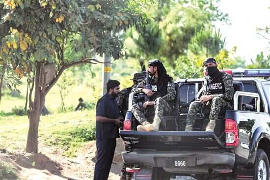■4月19日,安全人员在巴基斯坦努尔汗空军基地附近执勤。 巴基斯坦首都伊斯兰堡警方19日发布声明说,因外国代表团抵达伊斯兰堡,伊斯兰堡部分区域实施临时交通管制。 新华社发 |