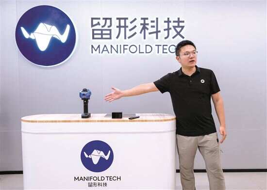 ■3月28日,在位于深圳市前海的深港青年梦工场,留形科技公司的创始人徐威介绍“留形机Q9000”。 新华社发 |