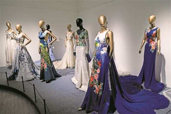 ■在广东潮州潮绣艺术馆内展示的带有潮绣元素的现代婚纱礼服。 |