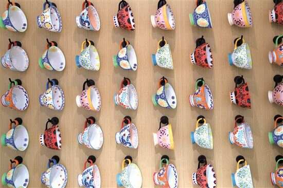 ■在潮州市松发陶瓷有限公司展厅拍摄的手绘杯。 |