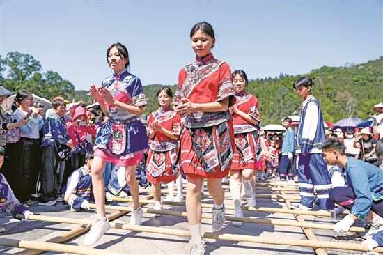 【编者按】 广清同心聚合力,乡村振兴启新程。 自2021年7月以来,广州两批援派干部肩负重托,奔赴清远24个镇,投身乡村振兴驻镇帮镇扶村工作大潮,推动“百千万工程”在清远走深走实。几年来,援派干部以脚踏实地抓铁有痕的干劲、敢于突破勇于创新的闯劲、持之以恒久久为功的韧劲,一茬接着一茬干,与当地干部群众共同奏响了一曲和美乡村协奏曲,美丽圩镇加快涌现,城乡面貌加速蝶变,产业发展持续向好。新快报特推出“广清驻镇帮镇扶村”系列报道,敬请关注。 驻清远连山小三江镇工作队携“客家嫂”以歌舞会友,共同打响民族文化品牌 “三月三的马头山春风荡漾,三月三的歌墟节八音飞扬,三月三的小三江碧波流淌,三月三的榕树下,歌声嘹亮……”一曲《壮家歌墟不散场》让游客听得如痴如醉。 4月18日至19日,2026年广东省“四季村晚”春季展示活动——连山“三月三”壮族歌墟节在清远连山壮族瑶族自治县小三江镇开启,活动以“歌传千年 心连山海”为主题,将非遗展演、民俗体验、特色美食、文旅融合融为一体,两天吸引逾2.89万游客走进壮乡,在沉浸式体验中感受壮瑶沃土的振兴活力。 新快报记者了解到,广州市花都区驻小三江镇工作队和后方组团单位已连续多年组织人员参与连山“三月三”壮族歌墟节,今年更带来“客家嫂”参与演出,以歌舞会友,携手推动农文旅融合发展。 歌舞迎客 非遗展演醉八方 壮歌是壮族人民用壮语演唱的民间歌谣,在连山素有“出门三步起歌声”的传承,或传唱历史、或传授知识、或谈情说爱、或娱乐身心,2018年列入广东省第七批省级非物质文化遗产代表性项目名录。 作为壮族人民传承千年的文化盛宴,连山“三月三”壮族歌墟节是当地创建广东省全域旅游示范县、打造“一镇一节,月月有节庆”品牌的重要载体。 18日晚的歌墟广场,坐歌堂率先开演,壮族男女歌手用原汁原味的壮语对唱,歌声婉转悠扬,字字句句皆是壮乡的生活情怀与文化传承。篝火燃起,火光映红了一张张笑脸,游客与村民手拉手载歌载舞,抛开距离与陌生,在欢歌笑语中感受壮乡儿女的热情奔放与淳朴真挚。 19日上午,粤A、粤E、粤H、粤L等各地的小车、大巴车接踵而至。歌墟广场入口处,壮家迎客的热情从未停歇。壮族八音奏响欢快的迎客曲,身着盛装的壮家姑娘、小伙手捧香醇的迎宾酒,为每一位宾客斟酒祝福。 9时许,非遗展演拉开了活动序幕。壮族八音、装古事、舞春牛、舞狮等非遗项目轮番上演,让现场游客目不暇接。 “每年的歌墟节我们这里都非常热闹,非常开心有四面八方的游客过来捧场。”戴着道具跳《舞春牛》迎宾的韦大姐对记者说,他们平时就很喜欢跳舞,这次和十几位舞伴出来表演。《舞春牛》是广东省非物质文化遗产项目,在表演中有人撑牛头,有人负责甩尾巴,有人拿犁架,还有人敲锣打鼓唱春牛歌。 “开、合,开开合,开、合,开开合……”新快报记者在现场看到,来自珠三角的游客纷纷跟着竹竿碰撞的清脆声响跳起了竹竿舞,沉浸式的体验让大家直呼过瘾。 文艺汇演的舞台上,精彩接连不断。山歌联唱《壮歌声声迎客来》以原生态的壮韵婉转迎客;《敬你一碗壮家酒》唱出了壮家人淳朴好客、以酒传情的真挚情怀;连山首创民族音乐剧《山那边・新希望》,生动演绎了连山各族儿女携手奋斗、砥砺前行的故事…… 活动最后,全体演员共同登台献唱《壮家歌墟不散场》,悠扬绵长的歌声在广场上空回荡,让游客听得如痴如醉。 美食引客 农旅融合烟火旺 除了精彩的表演,农文旅融合互动体验区与壮家美食区更是人气爆棚。新快报记者在现场看到,农特产品美食街摩肩接踵,充满了烟火气。 “这些山苍子是我们本地产的,它有提神和驱蚊等作用。”一位店主介绍说。互动体验区里,游客们纷纷动手体验山苍子香包制作、壮绣等非遗文创项目,在一针一线、一锤一凿中触摸非遗技艺的匠心与温度。壮锦瑶绣展示摊位前,绣球、香包、背包、饰品等各种琳琅满目的手工艺品吸引了游客的注意。舂白糍摊位前,两位壮族汉子手持大木锤不断地舂糍,一旁的工作人员则忙着包糍,勾起了游客的食欲,大家排起长龙购买尝鲜。 壮家美食区里,丝苗米、腐竹等连山特色农产品琳琅满目,“小三江镇一桌菜”、五色糯米饭、粑卜、豆腐酿、猪血酿等壮家特色小吃齐聚一堂,“粤菜师傅”匠心烹制民族美味,游客们一站式打卡壮乡烟火与地道好物,让舌尖尽享民族美食盛宴,也让连山的农特产品走出深山,走进游客心中。 “从广州开了三个小时车过来,感觉挺值的,虽然听不懂壮歌的内容,但亲切感受到当地的民族风情,体验了特色美食和烟火气,很开心。”在壮家美食区购买艾糍的郭小姐对记者说。 节庆留客 振兴路上歌不散 这场歌墟节共有2.89万人次参与,累计带动消费1549.04万元,线上观看量达2.6万人次,点赞量达4.7万次。活动已不仅是民族文化的展示舞台,更是连山推动农文旅体康深度融合的重要抓手,吸引了各地游客走进连山、走进小三江镇,为乡村经济的繁荣发展注入了源源不断的新活力。 新快报记者从驻小三江镇工作队获悉,工作队高度重视小三江本地民俗文化传承和发展,已连续多年支持连山“三月三”壮族歌墟节活动,今年在继续携同后方组团单位组织人员捧场之外,特地组织“梯面客家嫂”团队到场参与表演,带来了《古树飘香