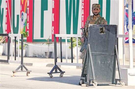 ■4月19日,安全人员在巴基斯坦努尔汗空军基地附近执勤。 新华社发 |