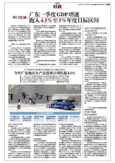 开门红 广东一季度GDP增速 跑入4.5%至5%年度目标区间