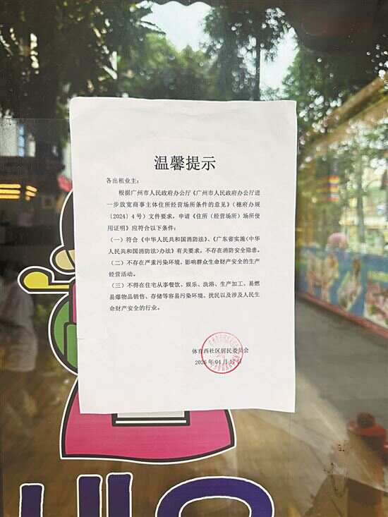 网红街区业态转型与商住平衡考验治理智慧; 街道方面表示将结合实际逐步推进,避免“一刀切” 一纸告示,激起千层浪。4月17日,广州市天河区天河南街体育西社区居委会发布告示,重申住宅内不得从事餐厅、娱乐、洗浴等行业。随后,体育西社区辖内六运小区要“关停餐饮”的消息迅速传开,引发关注。 六运小区汇聚了大量潮流店铺,是以“楼上住家、楼下开店”为特色的网红街区,但又深受住商矛盾困扰。新快报记者走访发现,该小区内多家店铺近日陆续关店转让,但也有新店正在入驻。天河南街道方面表示,将结合实际逐步推进相关政策落地,避免“一刀切”关停带来的冲击。街道相关负责人近日在接受记者采访时表示:“‘住改商’不能搞热餐饮,这个早有规定。现在要做的,是把规矩执行好,把矛盾调解好。”显然,六运小区正面临着一场关乎业态转型与商住平衡的治理考验。 政策 住宅禁开餐饮并非新规,早有明确约束 新快报记者注意到,此次体育西社区并非发布“新政”。自2010年“住改商”政策实施以来,六运小区内的住宅经审批后可开展商业活动。目前,六运小区汇集了酒吧、咖啡店、中古店、日料店、精品店等小资特色店铺600余家,近年来一跃成为广州市热门网红消费集聚地之一,吸引众多年轻人前来消费。 另一方面,六运小区的商住矛盾早已凸显。去年5月,新快报曾报道,多位居民反映小区内酒吧逐渐增多,深夜噪音不断,峰值还一度超过70分贝,远超相关标准。尤其在节假日期间,小区俨然成为“不夜城”,严重影响居民正常生活。同时,餐饮店铺存在油烟污染和卫生问题。按摩店、电玩店进驻居民楼,人员混杂引发治安忧虑。居民们盼规范经营,还静于民。他们呼吁要有“可持续的解决方案”:应明确商铺营业时段、加装隔音设施、定期检查油烟排放、划定特定外摆区、限制酒吧密度、扶持文创和咖啡等业态。 事实上,早在2024年3月,广州市就发布了《关于进一步放宽商事主体住所经营场所条件的意见》(以下简称《意见》),明确住所、经营场所属于住宅的,申请人从事电子商务、无实体店铺的网络交易服务、咨询策划、工业设计、股权投资、咨询代理等无污染、无安全隐患行业,在经有利害关系的业主一致同意后,可由当地人民政府或其派出机构等部门(单位)出具场地使用证明;但不得在住宅从事餐饮、娱乐、洗浴、生产加工、易燃易爆物品销售存储等容易污染环境、扰民以及涉及人民生命财产安全的行业。 不仅体育西社区表态称小区内住宅不得从事餐饮行业,天河南街南一路社区居委会工作人员也向新快报记者表示:“住宅一直以来都是不能做餐饮的。” 此外,今年年初国家市场监督管理总局颁布的《网络餐饮服务经营者落实食品安全主体责任监督管理规定》(以下简称《规定》)将于6月1日起正式施行,明确住宅、民房、车库、地下室等不得作为餐饮外卖经营场所。这一全国性新规进一步加速了各地对“住改商”餐饮的清理整顿步伐,也让六运小区这一网红街区再次被推至风口浪尖。 走访 有人闭店转让,有人与房东“联营”开店 随着相关政策的落实,商户将受到怎样的影响呢? 4月21日下午,新快报记者走访六运小区,即便是工作日,街区内依旧人流涌动。多家网红咖啡店生意火爆,门前外摆区坐满了休闲消费的年轻人。日落时分,餐饮店、酒吧开始迎来客流高峰,整个街区沉浸在热闹的烟火气中。 针对住宅“禁止餐饮”一事,新快报记者采访了多家餐饮商户,多数商户表示并未收到通知,经营情况暂未受到影响。记者走访发现,小区内多家店铺近期正陆续闭店转让,但也有新店正在入驻。六运小区一家拉面店的店员告诉记者,她注意到附近店铺门上张贴的“温馨提示”。“那家店上个月就关门了,但那张告示上周才贴出”。她表示,此前听说过住宅不得开设餐饮店的规定,但像这样正式的书面提醒还是第一次见到。 政策收紧的影响,在餐饮商户的证照办理上体现得尤为明显。近日,有商户在社交媒体上发文称,目前六运小区内餐饮店的热食证过期后,已无法续期,店铺因此无奈退场。商户朱先生告诉新快报记者,政策收紧受影响最大的是两类商户:一是新签约但尚未开业的,“因为住宅性质房屋很难拿到‘场地使用证明’,要看业态”;二是食品经营许可证即将到期的老餐饮店,因为没办法办理新的热食证。朱先生表示,住宅办理“场地使用证明”是有门槛的,申请人需确保不从事生产加工、餐饮、娱乐、洗浴等业态,确保开店不扰民;其次还须进行公示,通常在居民楼门口或电梯口张贴告示进行公示。公示期结束后,街道才会出具“场地使用证明”,这才是合规的流程。 六运小区内住宅无法开餐饮店,为何仍不断有新店进驻?有商户向新快报记者透露,在六运小区,可以通过中介,与房东签订“联营”合同,使用房东的营业执照与食品许可证,以主理人的身份与房东合作经营开店。 除了餐饮行业,政策中禁止的娱乐、洗浴类业态,在六运小区内也仍有存在。目前六运小区内仍开设多家按摩店,大多提供SPA、沐足、按摩、搓澡等服务。新快报记者留意到,这些按摩店多数位于住宅楼二层、三层,由住宅改造而成,门口挂着常亮的灯牌,正对同楼层的其他住户。除按摩店外,住宅楼上还开有多家电玩店,提供PS5、switch等游戏主机游玩服务,其营业执照显示经营
