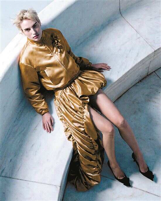 大量感后裙摆剪裁设计对比出纤细腿部线条,提升简洁裙装的华丽重工感。 |