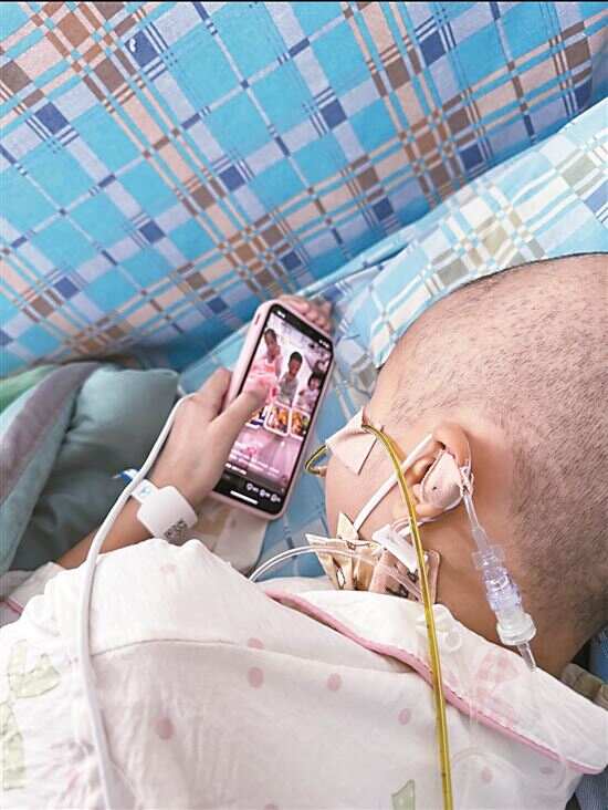 ■不能进食的彤彤只能看美食视频解馋。 |