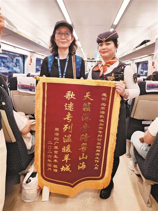 ■周深歌迷为广州东站工作人员送上锦旗感谢加开列车。 |