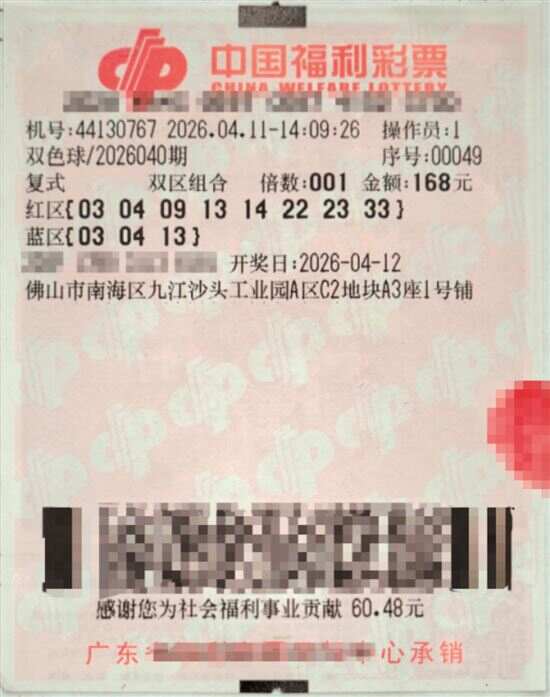 新快报讯 记者陆妍思 通讯员袁苏华报道 双色球第2026040期开奖中,全国共中出一等奖13注,其中1注花落佛山市南海区44130767福彩销售站点。中奖彩票是一张“8+3”复式彩票,中奖奖金661万多元。 近日,大奖得主方先生(化姓)来到佛山市福利彩票发行中心办理兑奖手续。据方先生介绍,他平日里偶尔购买双色球,始终抱着休闲娱乐、支持公益的轻松心态购彩。当问及中奖奖金的使用规划,方先生笑着说:“中奖给生活锦上添花,奖金将长远规划,合理安排。” 福彩双色球是一款乐透型彩票游戏,兼具公益性与娱乐性,在全国范围销售,全国统一奖池、全国统一开奖。该游戏按当期实际销售额的51%、13%和36%分别计提彩票奖金、彩票发行费和彩票公益金。以一张10元的双色球彩票为例,其中3.6元将纳入福彩公益金,主要用于补充社会保障基金、支持教育助教助学、发展残疾人事业、困难群体大病救助、补助城乡医疗救助基金等社会公益事业;重点用于老年人、残疾人、孤儿、留守儿童、困难群众等社会福利事业。其中,中央彩票公益金的60%用于补充全国社保基金,惠及民生。